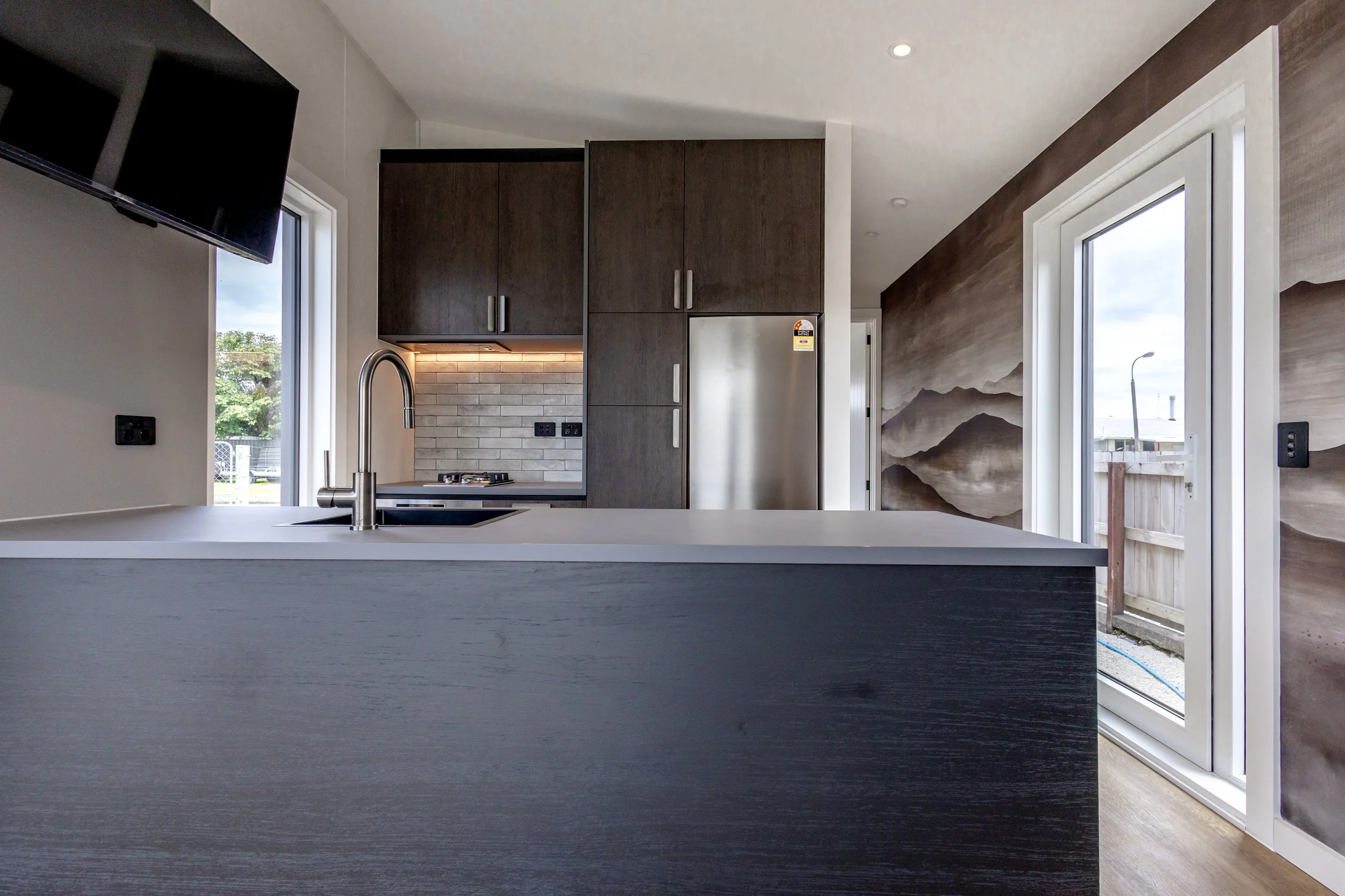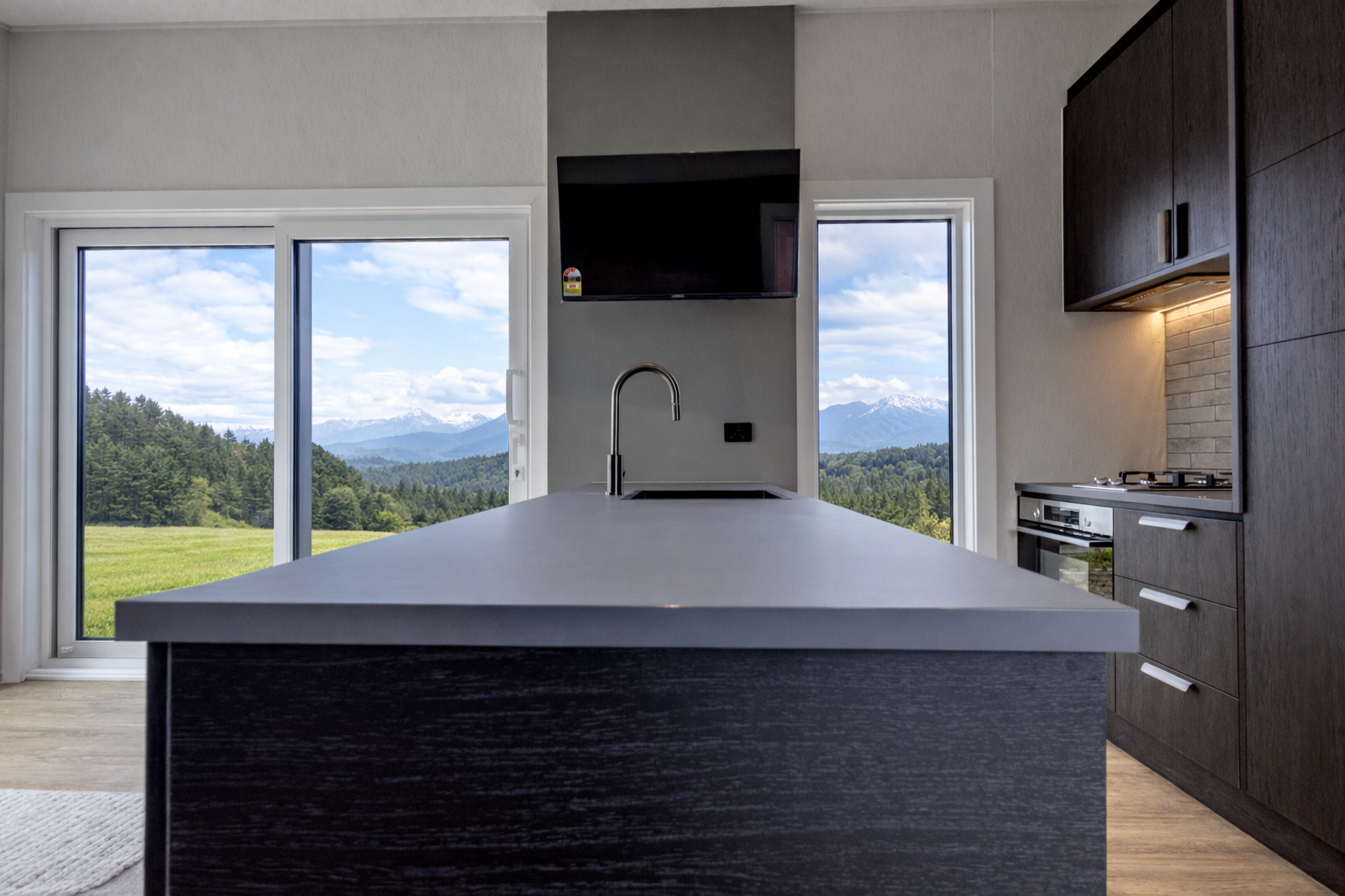 This 40 sqm SIMPortable unit is designed as an living room and kitchen space, perfect for expanding your home. Just add this to any of our bedroom bathroom units and you have a home big or small. Featuring two sliding doors and a standard entry door, this unit is also built with durable SIPS panels, PVC windows and a Stiebel Eltron Ventilation system. The modern kitchen is fully equipped with an oven, cooktop, and dish drawer. Backed by a 10-year guarantee.